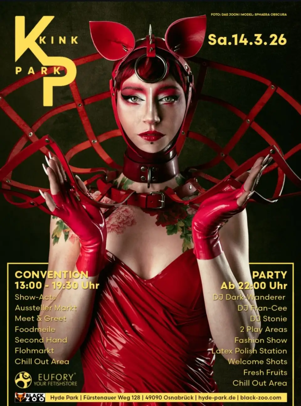 Der KinkPark ist die Convention in Osnabrück, die BDSM- Fans und fetischbegeisterte Personen in einem vertraulichen Flair zusammenbringt. Ihr werdet von Designern und Handwerkern viele BDSM- und Fetisch-Produkte kennenlernen. Diese werden euch sicherlich zum Einkaufen anregen. Ob die neuen Instrumente zum Spielen, die perfekt ausgemessene Corsage oder das Latexoutfit, das auf den Körper zugeschnitten ist. Bei uns finden alle etwas. Aber ihr werdet nicht nur beim Einkaufen inspiriert, sondern auch die Showacts werden euch auf vielfältige Weise einheizen und euch begeistern. Das wird dich erwarten: Aussteller aus dem Bereich Fetisch, Gothic, BDSM, Alternative